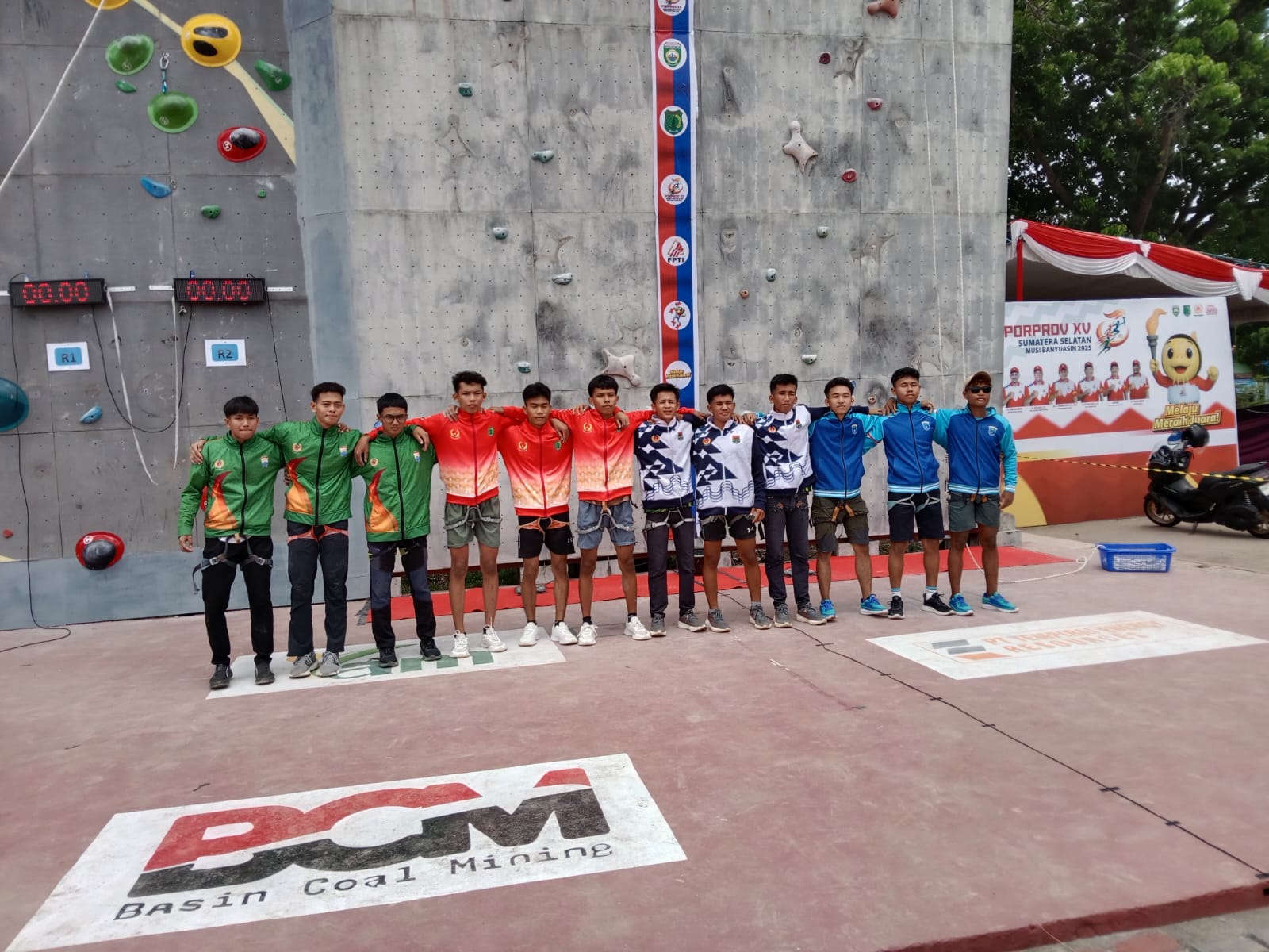 Tim Panjat Tebing OKI yang turun dengan tiga atlet, yakni Angga Saputra, Cahandra Setiawan, dan Febriando, tampil penuh semangat meski dengan kekuatan terbatas.